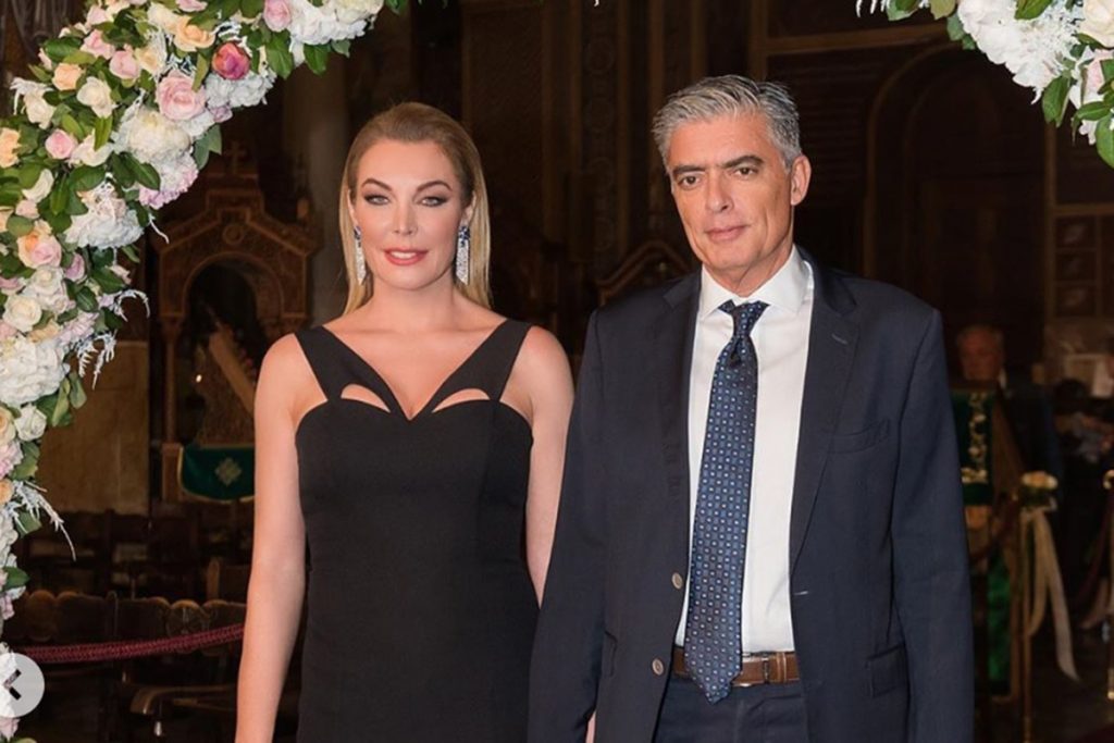 Την διάσημη παρουσιάστρια που φορούσε ένα μαύρο μάξι εντυπωσιακό φόρεμα ,συνόδευσε στο μυστήριο ο σύζυγός της Νίκος Ευαγγελάτος με κομψό κοστούμι.