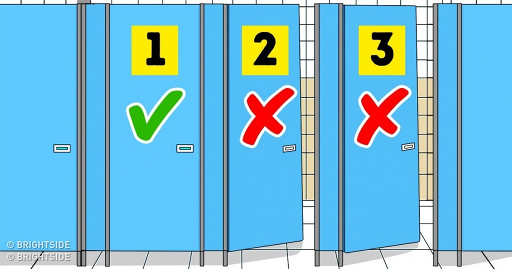 Όταν πηγαίνετε στην τουαλέτα, προσπαθήστε να επιλέξετε αυτή που φαίνεται καθαρότερη. Με την ευκαιρία, είναι ενδιαφέρον ότι πολλοί άνθρωποι προτιμούν τουαλέτες που είναι μακρύτερα από την μπροστινή πόρτα. Επομένως, ρίξτε μια πιο προσεκτική ματιά στην πρώτη τουαλέτα και ίσως αυτή να είναι η καλύτερη επιλογή.