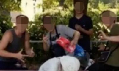 Φωτογραφία σοκ: Έφηβοι ποζάρουν, αφού «έλουσαν» με αλεύρι και αβγά ψυχικά ασθενή γυναίκα