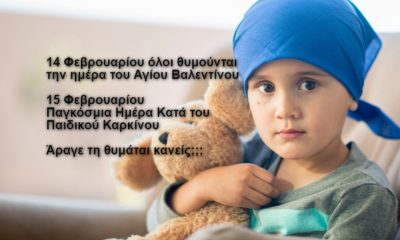 14 Φεβρουαρίου όλοι θυμούνται την ημέρα του Αγίου Βαλεντίνου, 15 Φεβρουαρίου Παγκόσμια Ημέρα Κατά του Παιδικού Καpkίνou- Άραγε τη θυμάται κανείς;;;