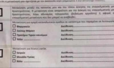 Κορωνοϊός: Αυτό είναι το έντυπο που πρέπει να συμπληρώνουν οι πολίτες για τη μετακίνησή τους