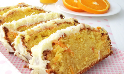 Μυρωδάτο κέικ πορτοκαλιού καλυμμένο με κρέμα πορτοκαλιού