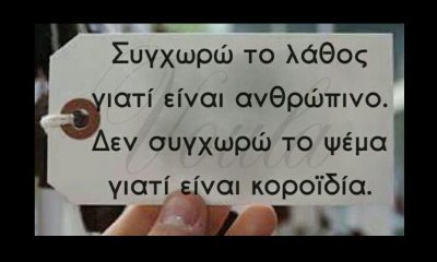 26 Φεβρουαρίου 2019Συγχωρώ το λάθος γιατί είναι ανθρώπινο. Δεν συγχωρώ το ψέμα γιατί είναι κοροΐδία.
