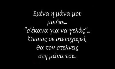 26 Φεβρουαρίου 2019Εμένα η μάνα μου μου΄πε.. «Σε έκανα για να γελάς» Όποιος σε στεναχωρεί, θα τον στέλνεις...