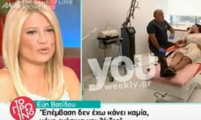 8 Μαΐου 2018Σήμερα στην εκπομπή Πρω1νό προβλήθηκε ένα στιγμιότυπο που η Εύη Βατίδου έκανε μια θεραπεία με laser...