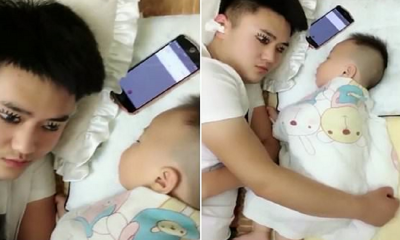 Μπαμπάς ζωγράφισε ψεύτικα μάτια στα βλέφαρά για να κοιμηθεί λιγάκι χωρίς να τον καταλάβει το μωρό του