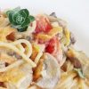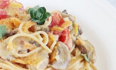Νηστίσιμη μακαρονάδα με ταχίνι και μανιτάρια