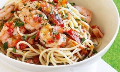 Γαρίδες πικάντικες με σπαγγέτι και ντομάτες!