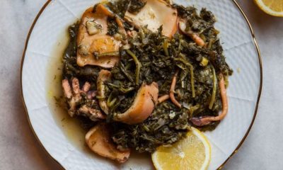 Νόστιμες σουπιές γιαχνί με διάφορα άγρια χόρτα. Συνταγή από Άγιο Όρος