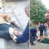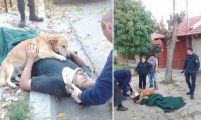 Σκύλος δεν σταματά να αγκαλιάζει τον ιδιοκτήτη του που τραυματίστηκε από πτώση.