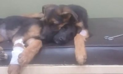 Κουτάβι Παρηγορεί Με Μια Αγκαλιά Την Άρρωστη Αδερφή Του Που Παλεύει Με Λοίμωξη Σε Κτηνιατρική Κλινική