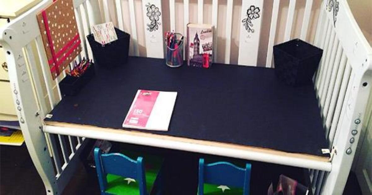 Το κρεβατάκι παραμένει στο παιδικό δωμάτιο και γίνεται ένα… γραφείο δραστηριοτήτων για ζωγραφική, να διάβασμαι και παιχνίδι. Αν οι ένοικοι του παιδικού δωματίου είναι δύο, είναι η ιδανική λύση για να μην αγοράσετε δύο ξεχωριστά γραφεία, αφού είναι αρκετά άνετο για δύο λιλιπούτεια ανθρωπάκια.