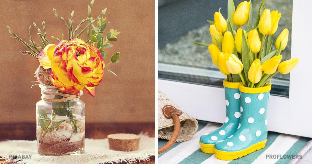 Διάφορα λουλούδια μπορούν να τοποθετηθούν σε ένα ασυνήθιστο δοχείο και να κάνουν την θετική διαφορά σε κάθε δωμάτιο. Η ‘γλάστρα’ θα μπορούσε να είναι οτιδήποτε, ακόμη και η πιο απίθανη κατσαρόλα ή ένα κουτί δώρου.