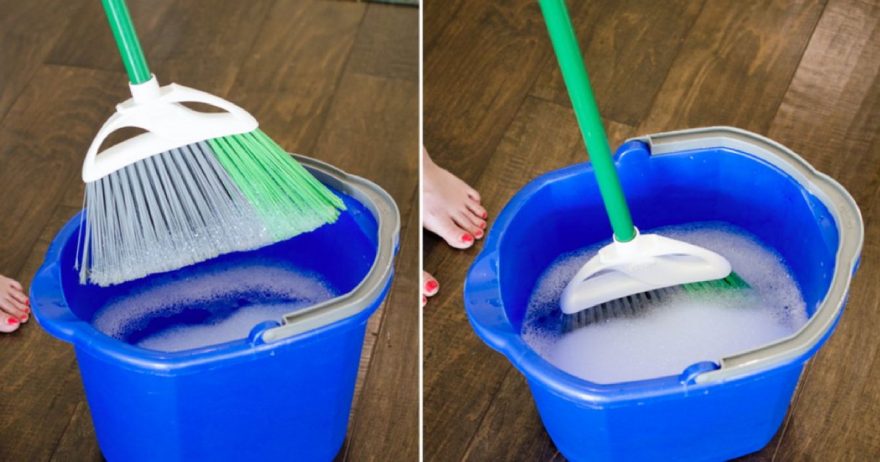 Την επόμενη φορά που θα ολοκληρώσετε το σκούπισμα, βυθίστε τη σκούπα σας για μια ώρα σε ένα κουβά με ζεστό νερό και σαπούνι πιάτων. Αφήστε τη να στεγνώσει και στη συνέχεια τοποθετήστε τη μακριά.