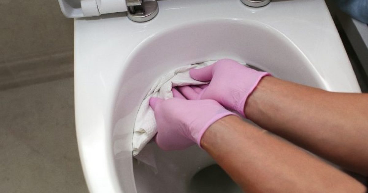 Αυτή η τεχνική απαιτεί να φορέσετε λαστιχένια γάντια. Πάρτε μαντηλάκια στεγνωτηρίου και τρίψτε τον δακτύλιο της λεκάνης μέχρι να εξαφανιστούν οι κηλίδες.