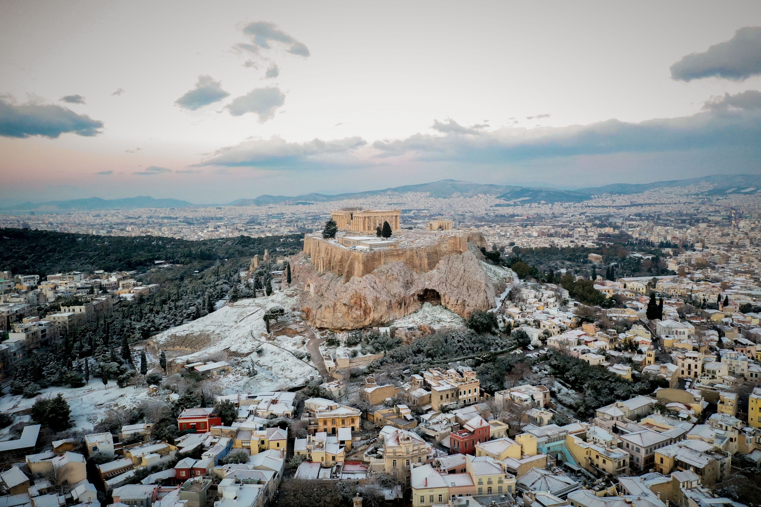 Χιονισμένη η Ακρόπολη- Εντυπωσιακές αεροφωτογραφίες της Αθήνας που ντύθηκε στα λευκά