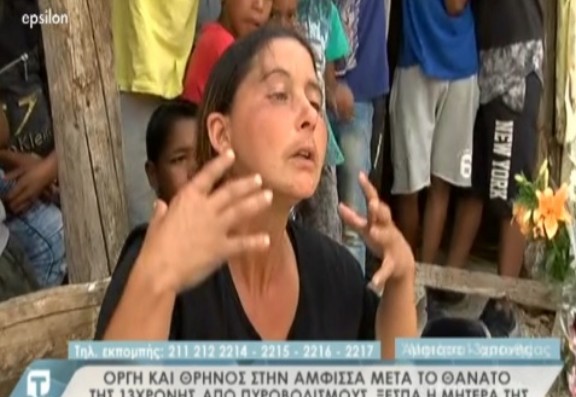 «Χόρευε η κόρη μου, εγώ ήμουν απέναντι και άκουσα τον πυροβολισμό. Βλέπω την κόρη μου κάτω. Μου σκότωσε την κόρη αυτός, σηκώθηκε κι έφυγε. Τον είδα ότι ήταν αυτός. Μου σκότωσε το μωρό, εγώ έσπασα το σπίτι του, εγώ έβαλα φωτιά στο αυτοκίνητό του. Σκότωσε την κόρη μου. Ήταν κι άλλα παιδιά που χόρευαν εδώ. Δεν πρόλαβε να φύγει το κορίτσι μου. Εγώ τη σήκωσα από κάτω…» λέει η μητέρα της 13χρονης στην εκπομπή Tatiana Live με την Τατιάνα Στεφανίδου στο Epsilon.