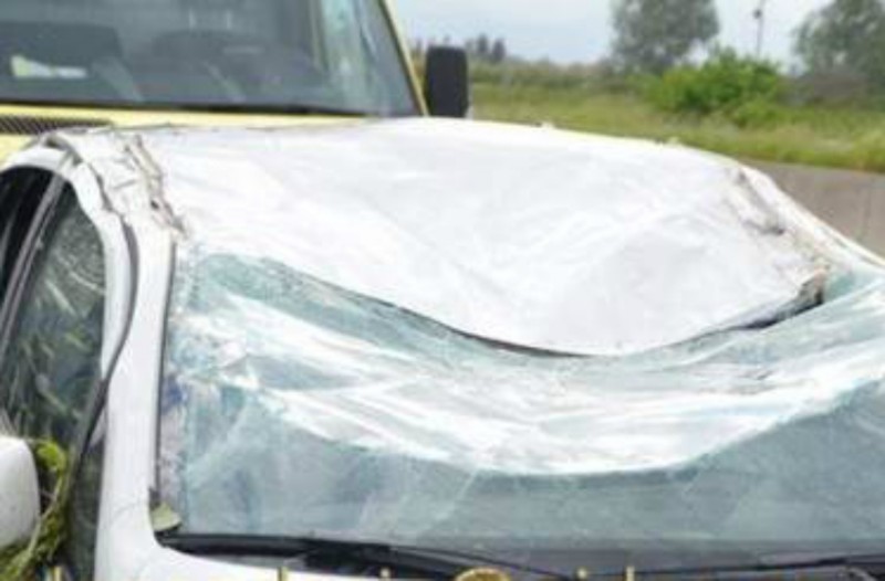 Οπως φαίνεται και από τις εικόνες που ήρθα στο φως της δημοσιότητας ο αέρας πέταξε το δένδρο στο παρμπρίζ και την οροφή του οχήματος.
