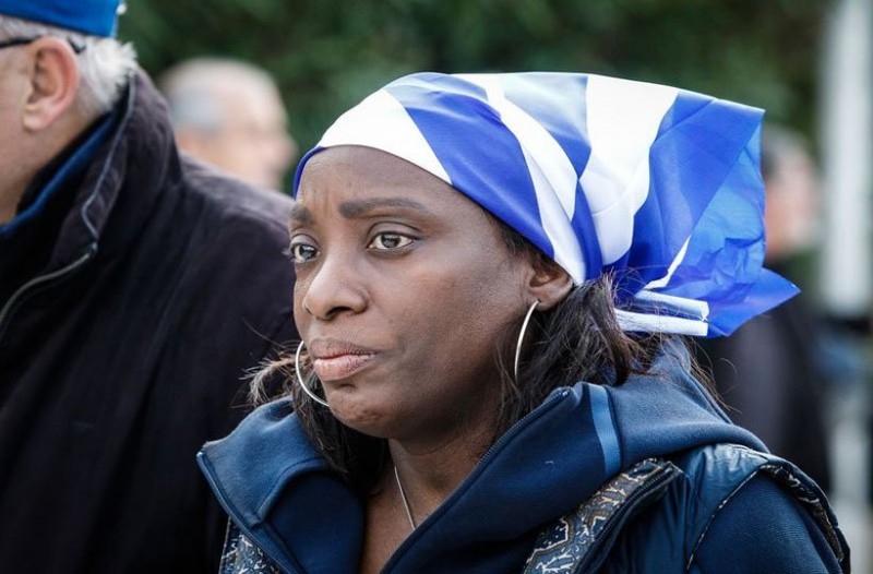 Όπως βλέπεται και στην φωτογραφία πρόκειται για μια κυρία σκούρου δέρματος με την ελληνική σημαία! Δεν γνωρίζουμε από που κατάγεται αλλά σίγουρα πρόκειται για την πιο δυνατή εικόνα από το συλλαλητήριο!