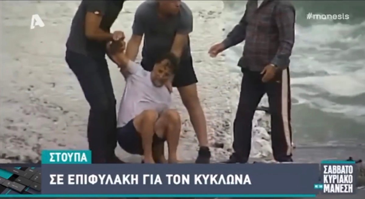 Με υπερπροσπάθεια κάτοικοι της Στούπας έσωσαν ψαρά που είχε τη φαεινή έμπνευση να σώσει το σκάφος του με οκτώ μποφόρ. Όπως φαίνεται στο βίντεο του alpha, τον έσωσαν κυριολεκτικά από του Χάρου τα δόντια. Ήταν μάλιστα τέτοια η οργή τους, που αφού τον έσωσαν τον πλάκωσαν στις κλωτσιές!