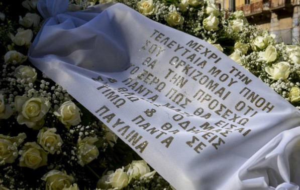 «Μέχρι την τελευταία μου πνοή σου ορκίζομαι ότι θα την προσέχω. Το ξέρω πως θα είσαι πάντα μαζί μας και θα μας οδηγείς. Σ’ αγαπώ και θα σε τιμώ για πάντα. Παυλίνα», έγραφε το μήνυμα στο στεφάνι.