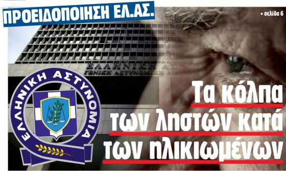 Οι απατεώνες ψάχνουν και επινοούν νέους τρόπους καθημερινά για να εξαπατήσουν ηλικιωμένους αλλά και να μπουκάρουν ως διαρρήκτες σε κατοικίες σε κάθε γωνιά της Ελλάδας και όχι μόνο. Η ΕΛ.ΑΣ. προειδοποιεί.