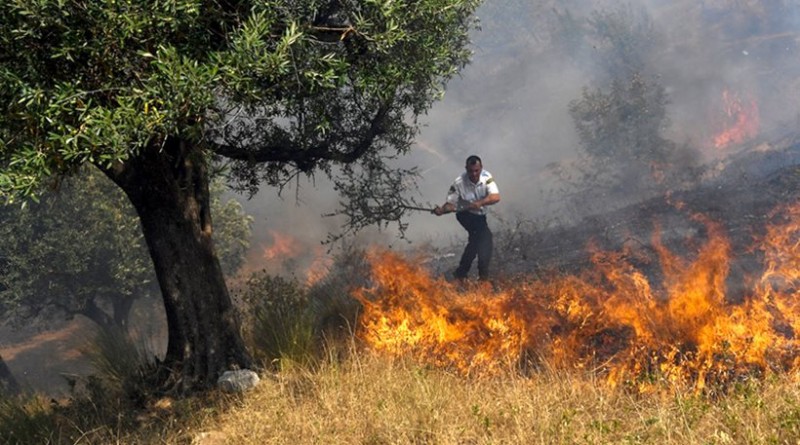 Στο μέτωπο της φωτιάς επιχειρούν 26 πυροσβέστες με 12 οχήματα, 14 άτομα πεζοπόρο τμήμα, ενώ από αέρος στην κατάσβεση συνδράμουν δύο πετζετέλ.