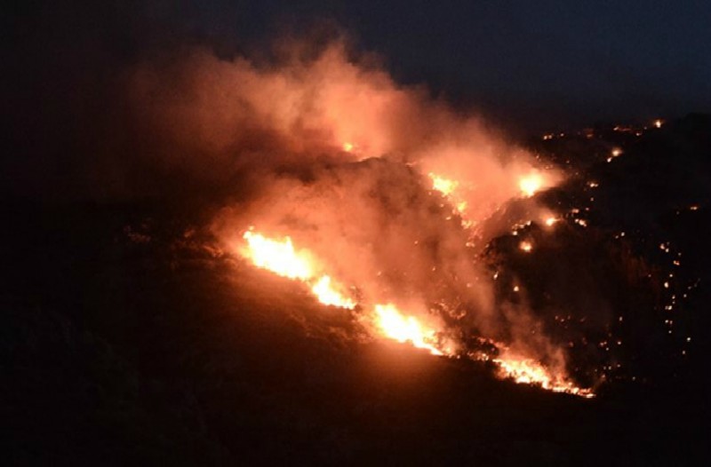 Οι πυροσβεστικές δυνάμεις κατάφεραν να περιορίσουν τη φωτιά πάνω στο βουνό, αλλά οι δυνατοί άνεμοι που πνέουν στην περιοχή δυσχεραίνουν το έργο της κατάσβεσης