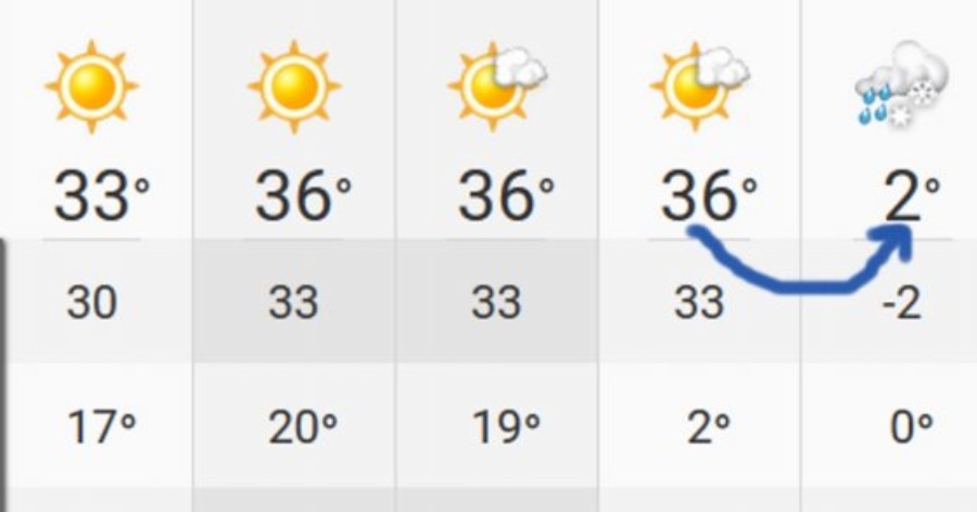 Αναλυτικά ο γνωστός μετεωρολόγος έγραψε στην ανάρτησή του: «Εαν επαληθευθεί η πτώση τη θερμοκρασίας των 34-36 βαθμών που επιμένουν και τα σημερινά προγνωστικά στοιχεία ότι θα συμβεί την ερχόμενη Τρίτη στο Ντένβερ (Denver) (πρωτεύουσα της πολιτείας των ΗΠΑ, Κολοράντο σε υψόμετρο 1600 μέτρων) τότε θα πρόκειται για μια από τις πιο ακραίες αλλαγές θερμοκρασίας που έχω προσωπικά τουλάχιστον εγώ παρακολουθήσει, καθώς από τον απόλυτο καύσωνα που θα επικρατεί μέχρι και τη Δευτέρα η περιοχή θα βρεθεί σε συνθήκες βαρυχειμωνιάς με χιονόπτωση μέσα σε λιγότερο από ένα 24ωρο!!».