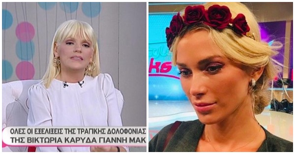 Η παρουσιάστρια βρισκόταν στην εβδομάδα μόδας το μοιραίο βράδυ και περιέγραψε πώς ακριβώς έμαθε η Βικτώρια Καρύδα το τραγικό νέο: «Η Βικτώρια είχε αφήσει το κινητό και την τσάντα της στον Προκόπη Μακρυλάκη, τον μακιγιέρ της, ο οποίος ήταν έξω από το show. Εκείνος είδε κάποια στιγμή ότι την έπαιρναν συνέχεια τηλέφωνο, ανησύχησε, το σήκωσε και ήταν η κολλητή της η Όλγα. Είπε στον Προκόπη ότι «έφυγε» ο Γιάννης, εκείνος έπαθε πανικό και πήγε στα backstage, δεν τον άφησαν να μπει, διαπληκτίστηκε με τους σεκιούριτι, τους εξήγησε ότι είναι σοβαρό, την πήρε κι έφυγαν. Τον ρώτησε αν έχουν πάθει κάτι τα παιδιά, της είπε όχι, ήρθε η Όλγα και τους πήρε και πήγαν στα πεθερικά της. Εκεί της ανακοίνωσε η πεθερά της τι έχει συμβεί. Ούρλιαξε, δεν μπορούσε να συνέλθει. Όταν πήγαν μετά στο σπίτι στη Βούλα και είδε τις σφαίρες και τα αίματα, εκεί κατέρρευσε».