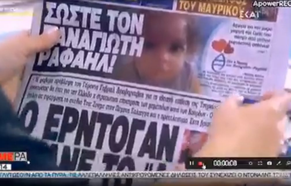 Συνέβη χτες στην πρωϊνή ενημερωτική εκπομπή «Σήμερα» του ΣΚΑΙ. Η δημοσιογράφος διαβάζει τους τίτλους των εφημερίδων και «αποκρύπτει» κατάφορα, την τεράστια επικεφαλίδα που κάνει έκκληση να σωθεί ο Παναγιώτης Ραφαήλ.