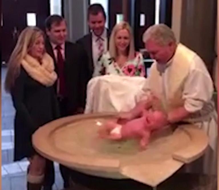 Δεν είναι γνωστό σε ποιά αμερικανική Πολιτεία έγινε το βάπτισμα, ωστόσο στο τέλος του βίντεο ο πατέρας είναι χαμογελαστός, γεγονός που σημαίνει: τέλος καλό όλα καλά!