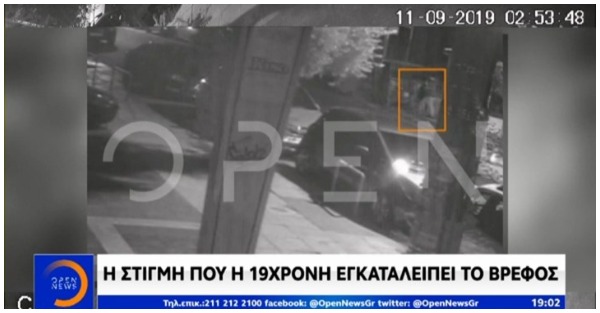 Βίντεο ντοκουμέντο από τις κινήσεις της 19χρονης που εγκατέλειψε το παιδί της σε πυλωτή πολυκατοικίας στη Νέα Ιωνία τα ξημερώματα της Τετάρτης παρουσίασε το Open.