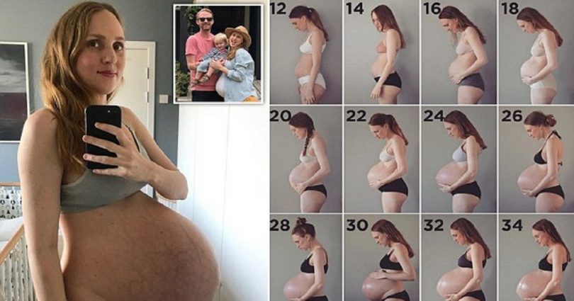Μια έγκυος μητέρα που περιμένει τρίδυμα βγάζει φωτογραφία κάθε βδομάδα την κοιλιά της.