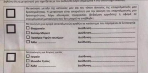 Κορωνοϊός: Αυτό είναι το έντυπο που πρέπει να συμπληρώνουν οι πολίτες για τη μετακίνησή τους