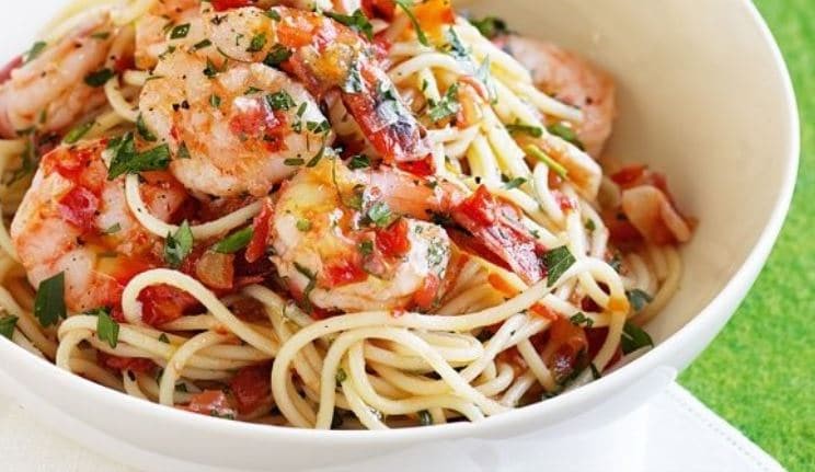 Γαρίδες πικάντικες με σπαγγέτι και ντομάτες!