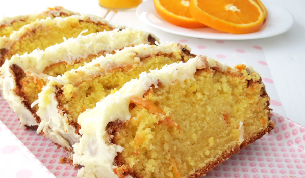 Μυρωδάτο κέικ πορτοκαλιού καλυμμένο με κρέμα πορτοκαλιού