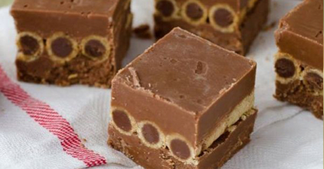 Βάλτε μετά με την σειρά τα πουράκια (όπως βλέπετε και στην φωτογραφία). Αφού τα αραδιάσετε ρίξτε και την υπόλοιπη ζύμη από πάνω. Βάλτε ένα κομμάτι λαδόκολλα από πάνω και πιέστε για να σας στρώσει. Αφήστε με την λαδόκολλα σκεπασμένο και βάλτε στο ψυγείο για τουλάχιστον 2 ώρες. Κόψτε σε τετράγωνα κομμάτια και σερβίρετε.