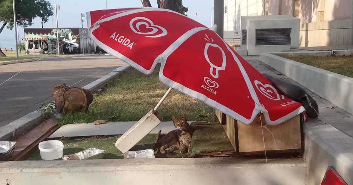 Φαγητό σε πιατάκια αλουμινίου, ομπρέλα για ίσκιο και κουτιά για ύπνο. Γιατί η αγάπη εκδηλώνεται με κάθε τρόπο». Υπάρχει και η φωτογραφία που το πιστοποεί.