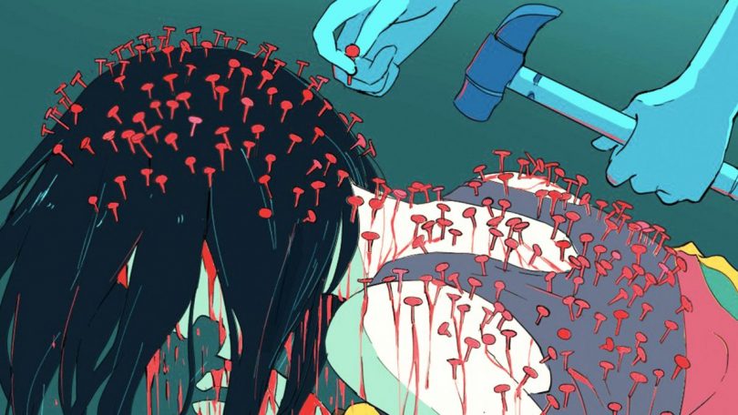 Μεταφορά για τη λεκτική βία, όπου κάθε λέξη μπορεί να μην σκοτώνει, αλλά πονάει σαν καρφί που μένει πάνω σου και όταν πια μαζεύονται πολλά, εκεί είναι που δεν αντέχεις άλλο…