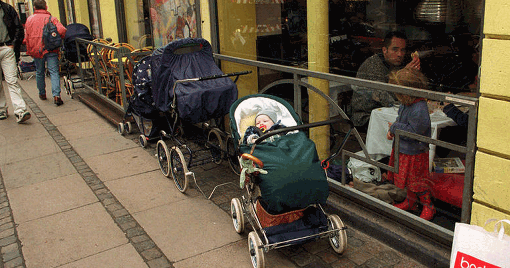 Η εικόνα αυτή είναι ιδιαίτερα διαδεδομένη σε Δανία, Σουηδία, Νορβηγία: Δεκάδες παιδικά καροτσάκια «παρακαρισμένα» στα πεζοδρόμια, στο καθένα από τα οποία ένα μωρό κοιμάται ανενόχλητο.