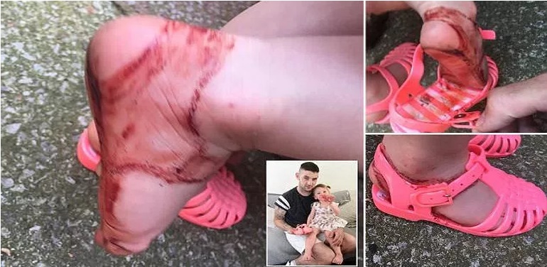 Ένα δίχρονο κοριτσάκι απέκτησε εκδορές στα πόδια της, όταν φόρεσε ένα ζευγάρι πλαστικά σανδάλια μόλις για μισή ώρα, σύμφωνα με τους γονείς της.