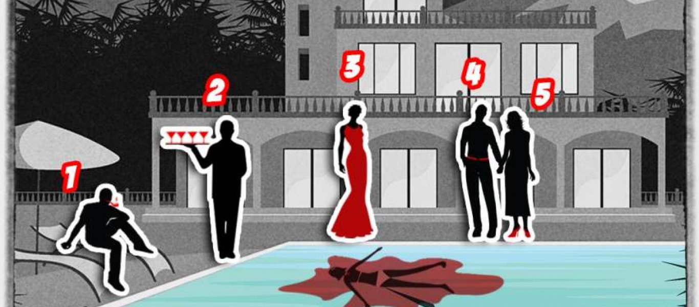 Ο αραχτός τύπος που καπνίζει στις ξαπλώστρες (νούμερο 1), ο μπάτλερ (νούμερο 2), η μοιραία γυναίκα με το κόκκινο φόρεμα (νούμερο 3) ή, μήπως, ένας εκ των δύο του ζευγαριού (νούμερο 4 και 5);