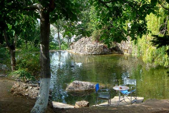 περιτρυγισμένο από πλατάνια, βελανιδιές, τρεχούμενα νερά και οπωροφόρα δέντρα μοιάζει με όαση!