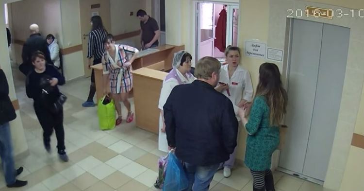 Αυτό το υλικό είναι από ένα νοσοκομείο στην περιοχή Μπέλγκοροντ της δυτικής Ρωσίας. Δείχνει μια φοιτήτρια της ιατρικής να απαγάγει ένα μωρό σε κοινή θέα. Αν ξέρετε τι πρέπει να προσέξετε, είναι αρκετά προφανές.