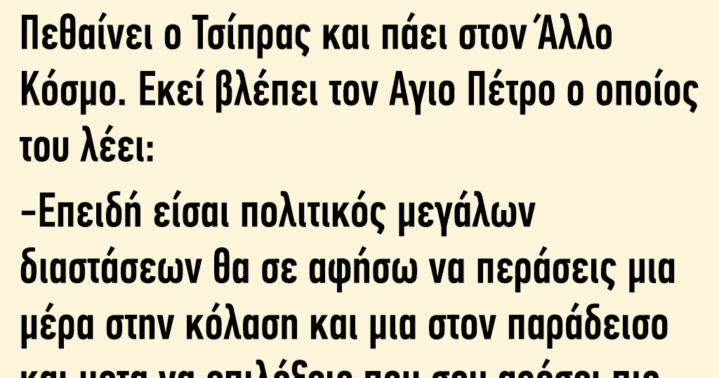 Πεθαίνει ο Τσίπρας και πάει στον Άλλο κόσμο