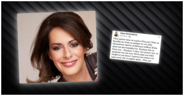 Σαν κεραυνός εν αιθρία έσκασε το πρωί της Τρίτης 7/8 ο θάνατος της γνωστής δημοσιογράφου και παρουσιάστριας Ρίκα Βαγιάνη. Όπως έγινε γνωστό, το τελευταίο διάστημα νοσηλευόταν στο νοσοκομείο, αλλά δεν ήθελε κανείς να μάθει για την περιπέτεια της υγείας της,παρά μόνο οι κοντινοί της άνθρωποι. Η Ζήνα Κουτσελίνη μέσα από τον προσωπικό της λογαριασμό στη διαδικτυακή πλατφόρμα του Facebook, αποχαιρέτησε την φίλη της και τα λόγια της συγκλονίζουν.