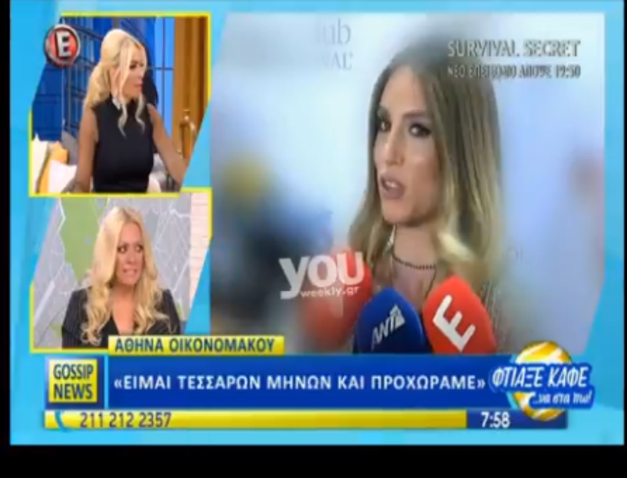 Η Αθηνά Οικονομάκου μίλησε για πρώτη φορά για την εγκυμοσύνη της στις τηλεοπτικές κάμερες, και δεν έκρυψε τη χαρά και τον ενθουσιασμό της.