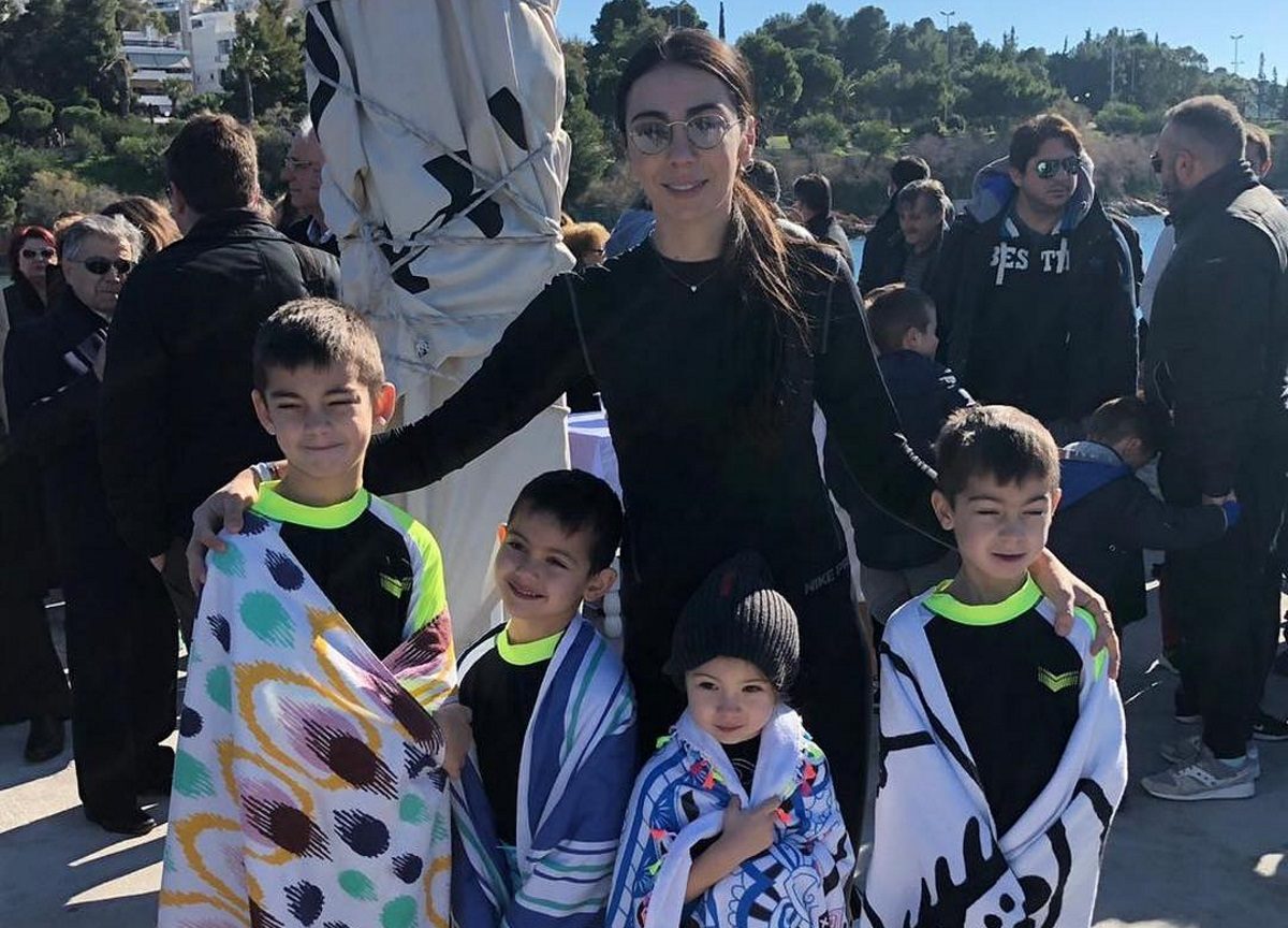 Όπως κάθε χρόνο έτσι και φέτος, η Ολυμπία Χοψονίδου αψήφισε το τσουχτερό κρύο και την χαμηλή θερμοκρασία και βούτηξε στα παγωμένα νερά μαζί με τα παιδιά της, προκειμένου να τιμήσει το έθιμο και να πιάσει τον σταυρό. Η σύζυγος του Βασίλη Σπανούλη μπορεί να διανύει τον όγδοο μήνα της εγκυμοσύνης της, όμως αυτό δεν την πτόησε από το να κάνει την καθιερωμένη βουτιά.