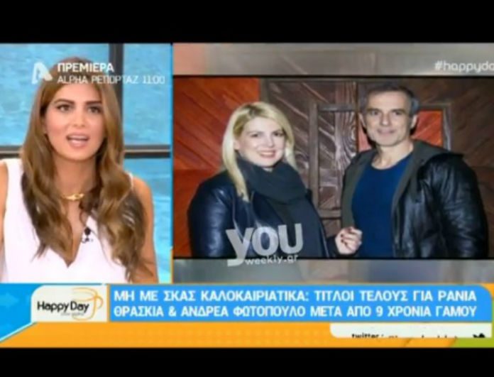 Στο Happy Day συζητούσαν για τον πολύκροτο χωρισμό της Ράνιας Θρασκιά από τον Ανδρέα Φωτόπουλο, και η Φλορίντα Πετρουτσέλι αποκάλυψε ότι η παρουσιάστρια ήταν εκείνη που έφυγε από το σπίτι, όταν τα πράγματα έφτασαν στο απροχώρητο!